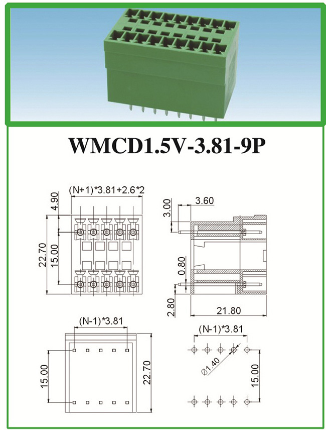 WMCD1.5V-3.81-9P PCB線路板接線端子
