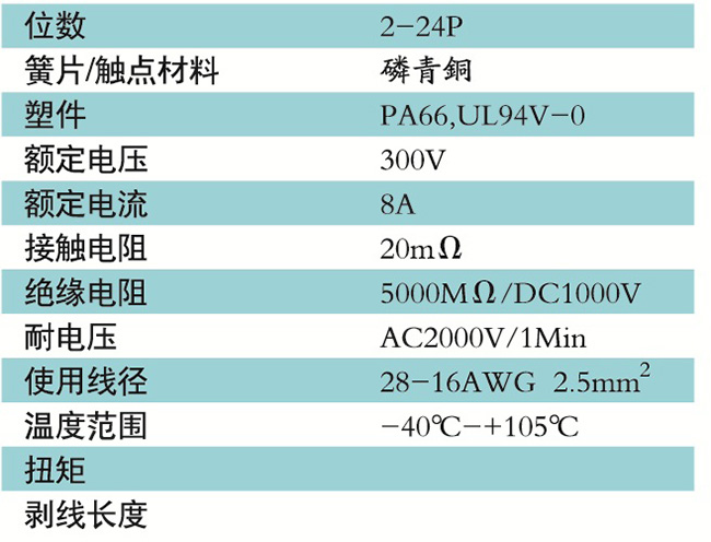 接線端子的絕緣材料用改性的尼龍(PA66),能達到或超過IEC947-7-1EN60947-7-1標準,阻燃等級達到UL94V-0具有良好的電氣性能和機械性能。螺絲用高強度的鋼制成鍍鋅或鎳處理,導電體四方針用合金銅制成表面鍍錫,壓片采用彈性及極強的磷青銅表面鍍錫或鎳;壓線框用抗應力裂縫腐蝕的合金銅制成,這些金屬表面還鍍錫或鍍鎳加以保護。設計完全符合IEC60947-7-1.GB14048.7等標準。